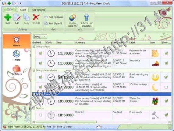 Comfort Software Hot Alarm Clock v3.1.0.0 英文正式版(時間管理工具軟體)