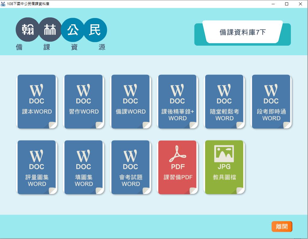 • 108學年下學期 國中 翰林版 公民備課資料庫 2-3年級(含課本、卷類資源、備課用書、習作含解答、教學輔助資源)教學光碟DVD版