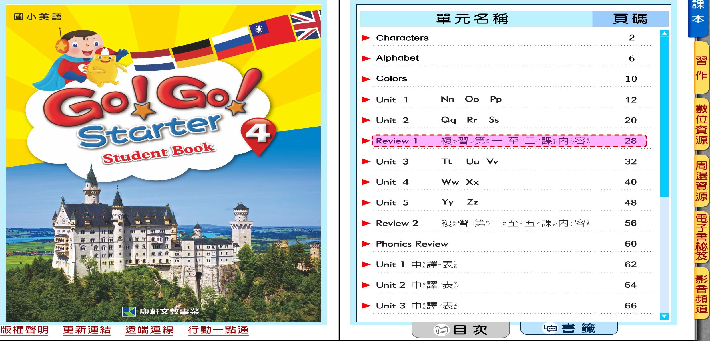 111學年下學期 國小 康軒版 英語電子書 Go!Go! starter 第4冊(含課本、習作含解答) 教學光碟