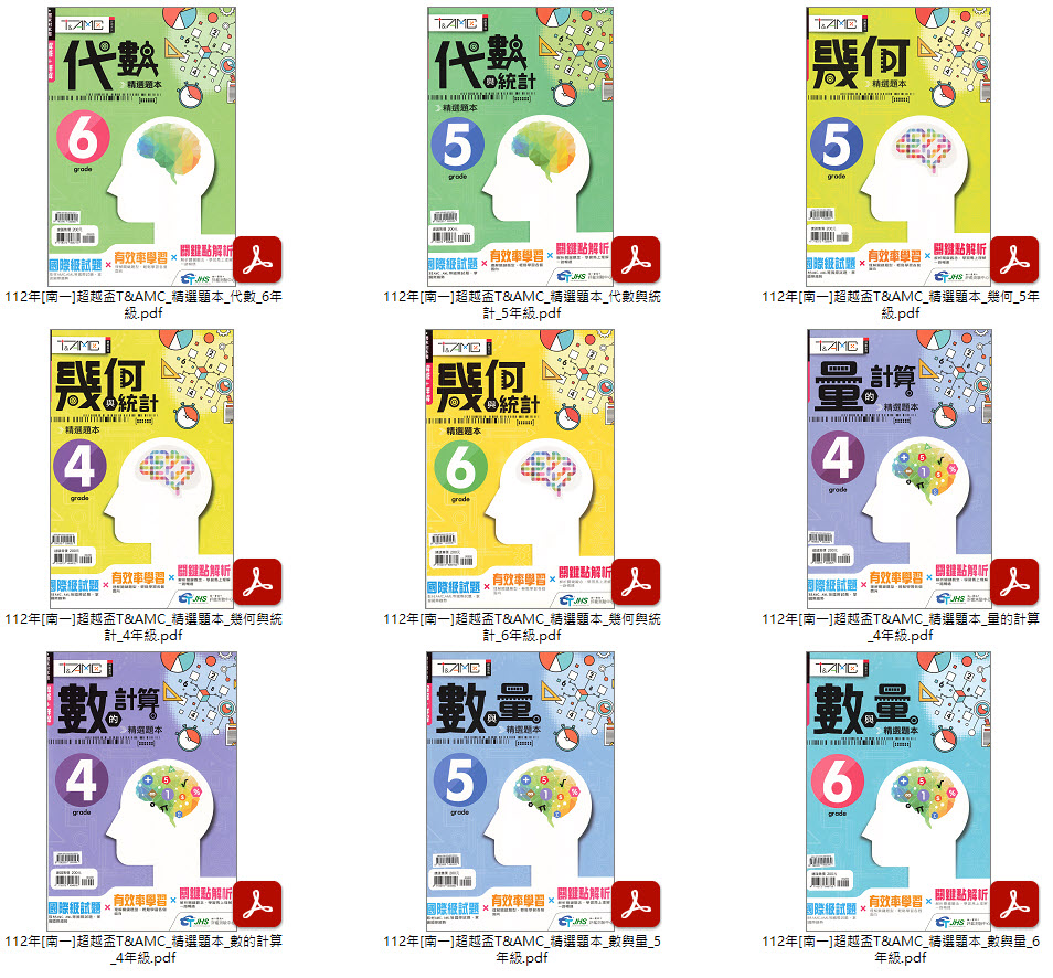 112年 [南一]國小數學 超越盃T&AMC 精選題本 4-6年級 + [前程]數學應用問題專輯 3-6年級 + [百世]最近應用問題 圖解法 中、高年級 教材光碟