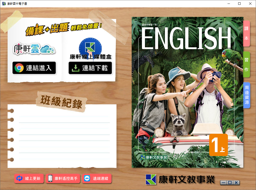 112學年上學期 國中 康軒版 英語電子書 1年級(含課本、習作含解答、教學資源)教學光碟