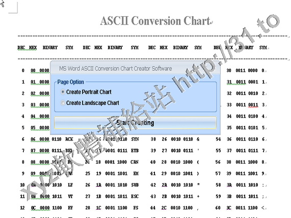 MS Word ASCII Conversion Chart Creator Software v7.0