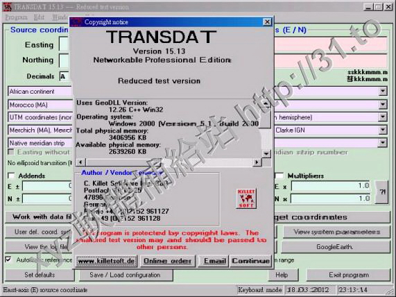 • Killetsoft TRANSDAT v15.13 英文正式版(地理坐標轉換軟體)